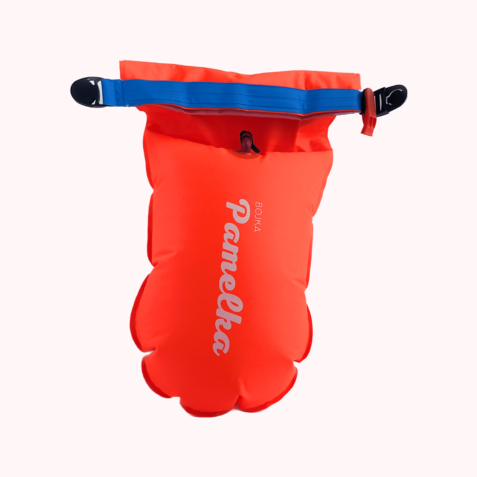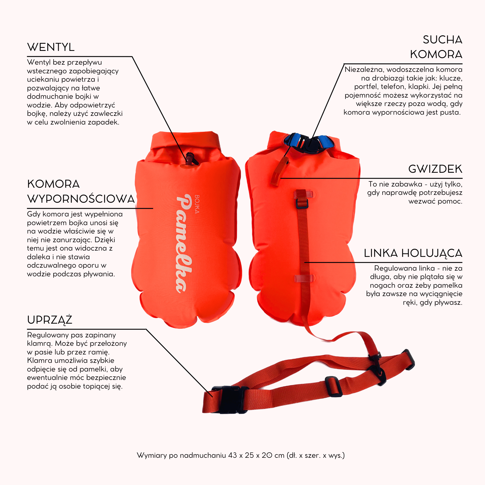 Model #ExtraPam to pamelka z zintegrowanym workiem wodoszczelnym i gwizdkiem ratowniczym. Pamelka zapewnia asekurację w trakcie pływania oraz zabezpiecza przed utonięciem.